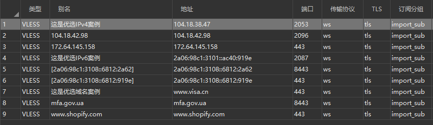 CF官方列表,推荐使用CM整理列表即可,该列表包含了大部分三网优选IP段,且会不定期更新维护; - 端口:默认为